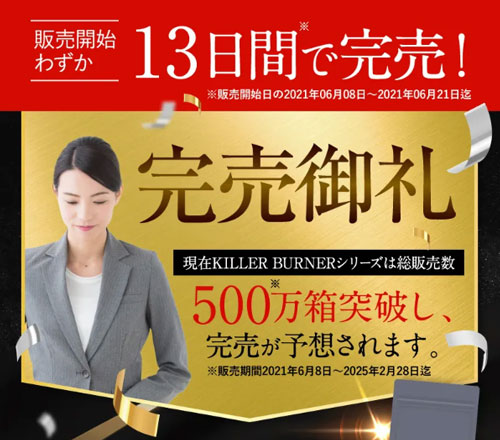 ただし注意してほしいのは、キラーバーナーⅡは爆発的な人気があるので売り切れてしまう可能性があります。
